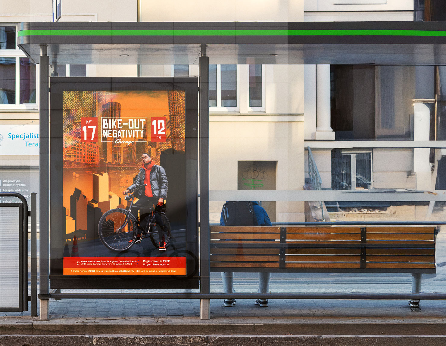Bike Out Negativity 2025 is a Chicago community event promoting positivity through a youth-focused bike ride. I created the full event branding posters, merchandise, social media, and signage capturing the energy and mission of the event.