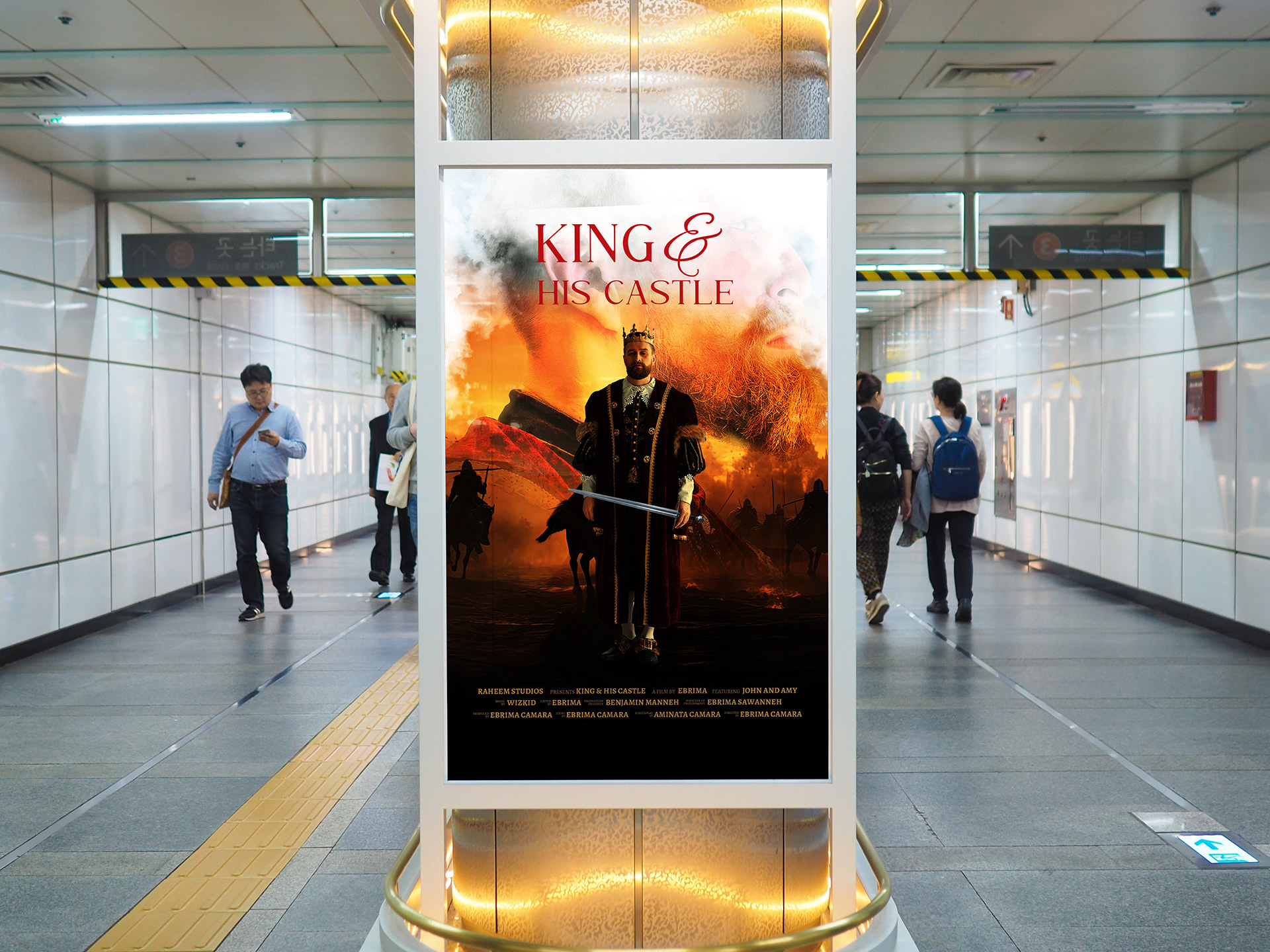 A dramatic and visually bold movie poster that blends regal power with cinematic storytelling. The central figure a commanding king dressed in royal attire stands confidently in the foreground, sword in hand, with flames and battle-ready horsemen charging through a fiery backdrop. The composition uses rich golds, deep reds, and smoky textures to create a sense of intensity, legacy, and authority. The typography features elegant serif fonts for the title, enhancing the regal theme while maintaining a modern cinematic feel.